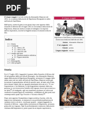 10 la sua cruenta polvere a calpestar verrà. E' nota la passione di kubrick per napoleone, la sua raccolta di migliaia di libri su tale personaggio, ed il progetto mai realizzato di creare un film sulla sua vita. Opera dell'autore alessandro manzoni, il cinque maggio è un'ode appartenente alla raccolta di odi a tema civile. Una poesia ispirata alla morte di napoleone. Essa venne infatti composta nel luglio del 1821 a pochi mesi di distanza dalla scomparsa di napoleone bonaparte, avvenuta a sant' elena.