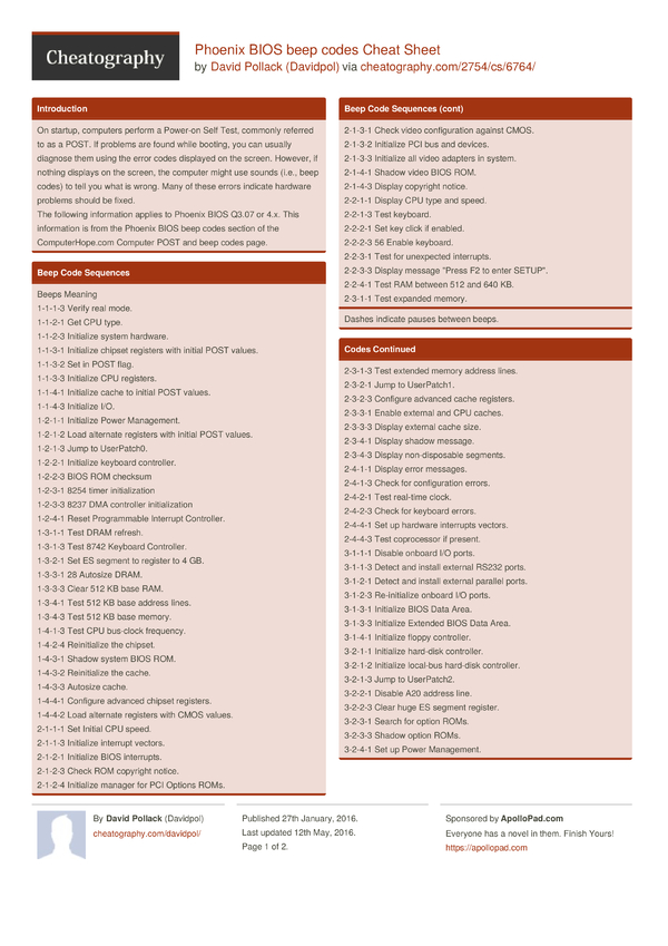 After doing all that my computer still beeps all the same, although in the last month i did have a few startups where the computer simply started immediately without beeping. This bios emits three sets of beeps. If errors are encountered during this post test, they are usually displayed via an audio beep or in the form of a code number flashed across the screen. Savesave power on self test beep codes for later.