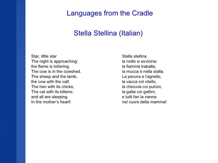 La fiamma traballa, la mucca è nella stalla. Stella stellina la notte si avvicina. Stella stellina la notte si avvicina la fiamma traballa la mucca è nella stella la pecora e l'agnello la vacca col vitello la chioccia coi pulcini la gatta coi gattini e tutti fan la nanna nel cuore della mamma. Discover and save your own pins pinterest.