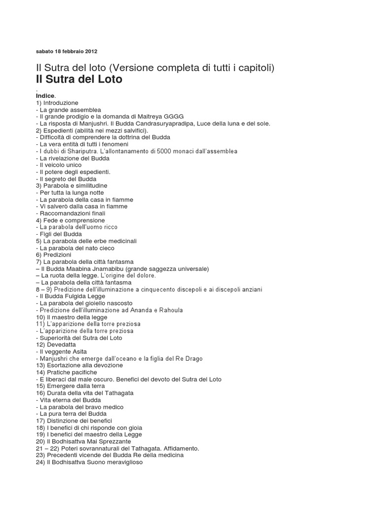 Sutra Del Loto Testo Completo Pdf. Cargar archivos pdf más similares. Il sutra del loto (versione completa di tutti i capitoli). Il presente testo è una versione semplificata del sutra del loto, tratta dalle due traduzioni in italiano, quella di francesco sferra (tradotta dal.