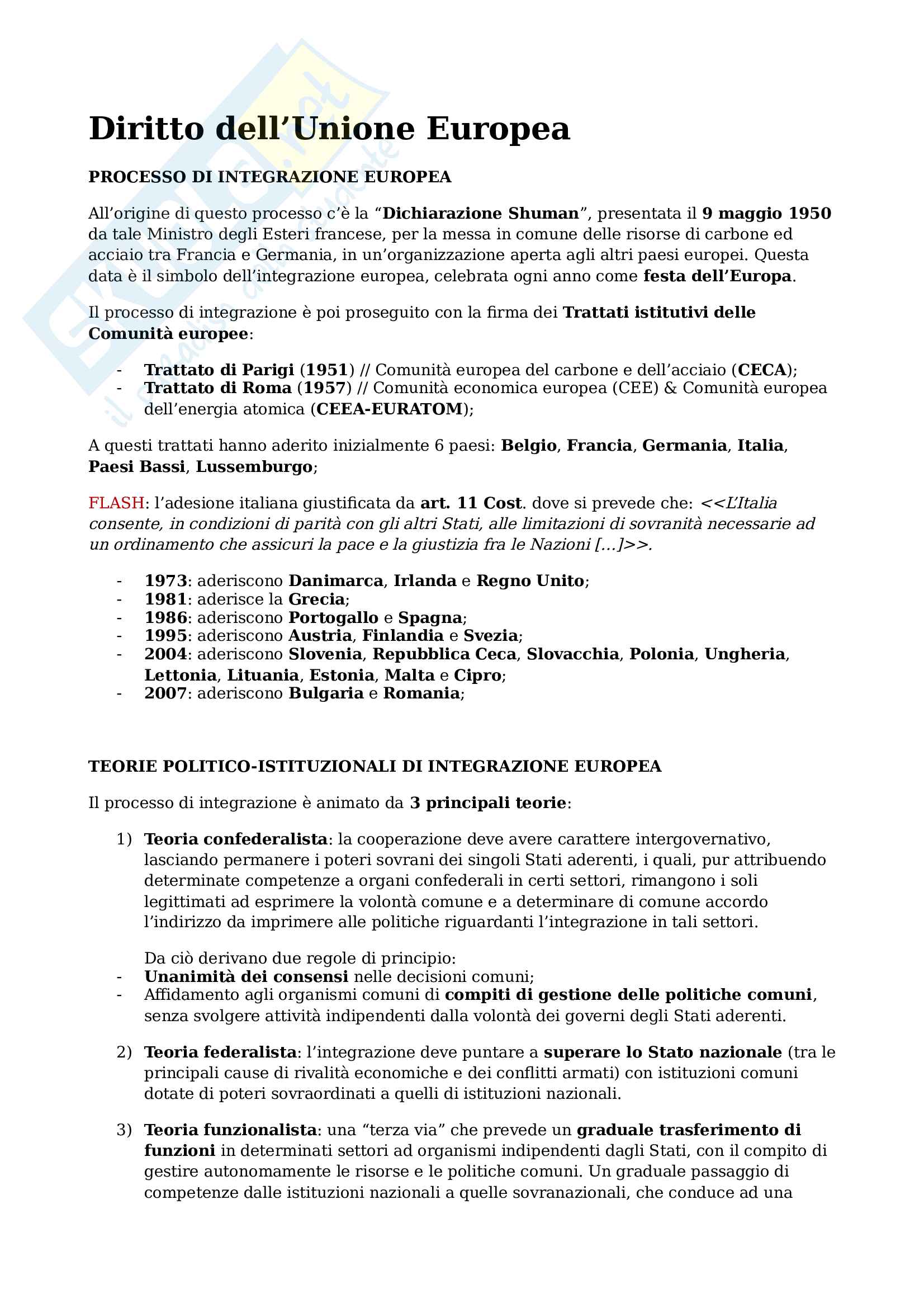 Appunti di Diritto dell'Unione Europea from www.skuola.net