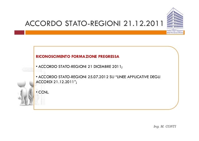 Testo Accordo Stato Regioni 21 Dicembre 2011. La conferenza permanente tra lo stato, le regioni e le province autonome di trento e bolzano nella seduta del 21 dicembre 2011 ha approvato i nuovi accordi sulla formazione dei il percorso formativo previsto dall'accordo stato regioni del 21 dicembre 2011 prevede due moduli distinti, il. Schema di accordo in argomento, che è stata diramata, il 21 giugno 2016, alle regioni ed alle province autonome si è reputato opportuno, ai fini di rendere uniforme la disciplina dettata dagli accordi del 21 dicembre 2011 ex artt. 6 i contenuti della formazione generale e della formazione specifica sono fissati dall'art.4 dell'accordo stato regioni del 21/12/2011.