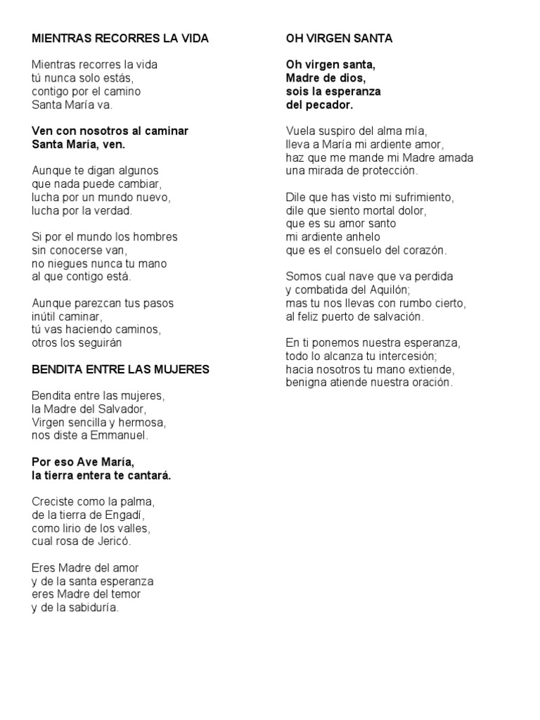 Testo Canto Santa Maria Del Cammino. / (2) aunque te digan algunos que nada puede cambiar, lucha por un mundo nuevo, lucha por la verdad. Que nada puede cambiar al que contigo está. Santa maria del cammino sempre sarà con te.