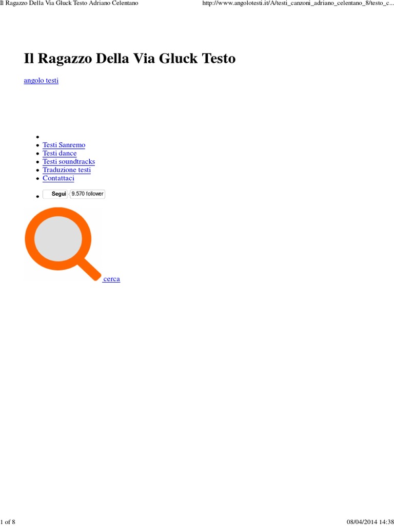Saturday, 13 february 2016 at 16:30 utc+01. Adriano celentano è nato all'indirizzo: Il ragazzo della via gluck è una canzone di adriano celentano, originariamente incisa su 45 giri nel 1966 e successivamente inserita prima nella raccolta la festa (destinata esclusivamente ai lettori della rivista di fotoromanzi bolero film). Questa è la storia di uno di noi, anche lui nato per caso in via gluck. D si divertiva a giocare con me.