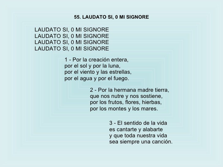 Видео laudato si' mi signore канала figliolprodigo1. Laudato si, o mi signor. Free cantico delle creature angelo branduardi con testo mp3. Laudato sii, o mi signore. 0 ratings0% found this document useful (0 votes).
